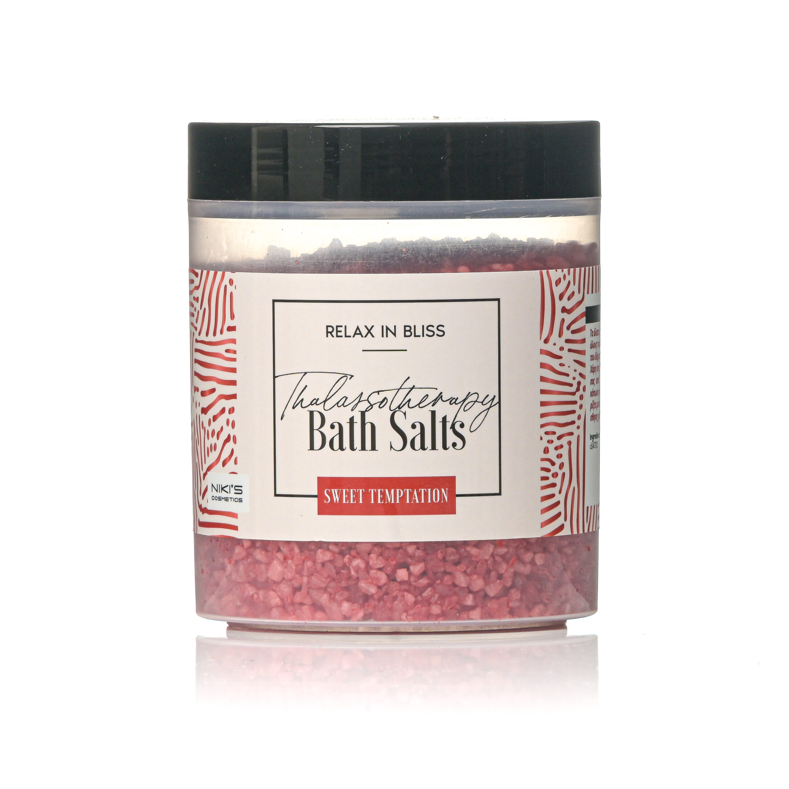 Τα Thalassotherapy Bath Salts Sweet Temptation είναι ειδικά σχεδιασμένα για να προσφέρουν μία αναζωογονητική και χαλαρωτική εμπειρία λουτρού. Αυτά τα άλατα περιέχουν φυσικά συστατικά που συνδυάζονται για να προσφέρουν ενυδάτωση και ανακούφιση στους μύες και το δέρμα. Το άρωμα Γλυκού Πειρασμού δημιουργεί μια απολαυστική και παιχνιδιάρικη ατμόσφαιρα, γεμάτη ζωντάνια και γλυκιά διάθεση. για μία χαλαρωτική εμπειρία με αίσθηση πολυτέλειας, το μπάνιο με τα άλατα αυτά ενισχύει την κυκλοφορία του αίματος και αποβάλλει τις τοξίνες, αφήνοντας το δέρμα απαλό και αναζωογονημένο.