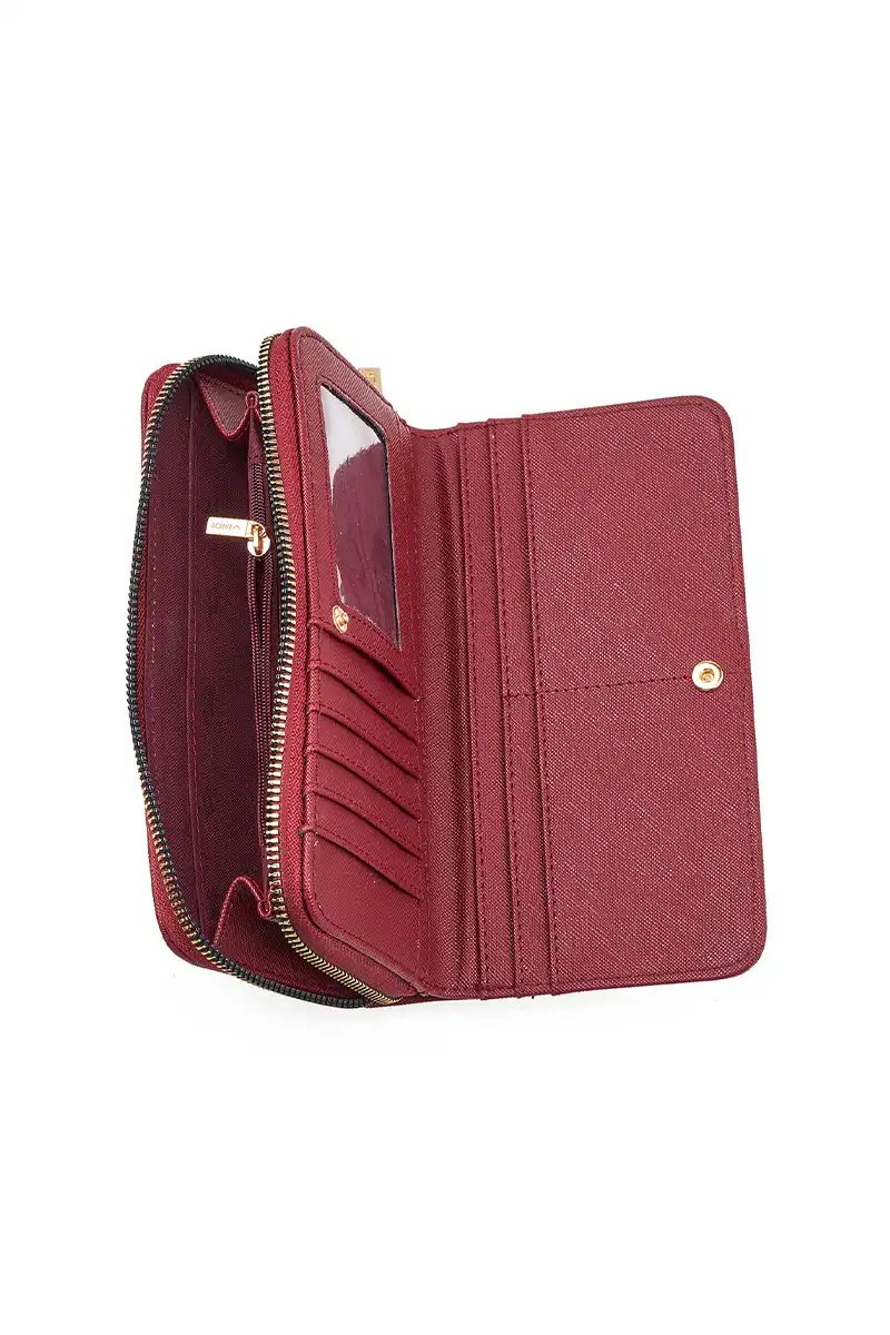 Ο εσωτερικός χώρος είναι άκρως λειτουργικός, με πολλαπλές θήκες για κάρτες, χώρο για χαρτονομίσματα και ξεχωριστή θήκη με φερμουάρ για κέρματα, εξασφαλίζοντας τέλεια οργάνωση. Το περιμετρικό φερμουάρ διατηρεί όλα τα αντικείμενα ασφαλή και εύκολα προσβάσιμα.